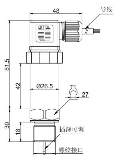 溫度變送器可直接安裝在測量點上。連接螺 紋:M20*1.5、G1/2、G1/4、M14*1.5。特殊螺紋或法蘭 請聯(lián)系業(yè)務(wù)員。