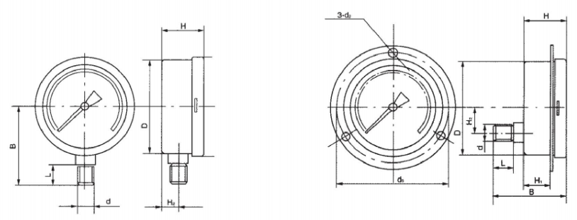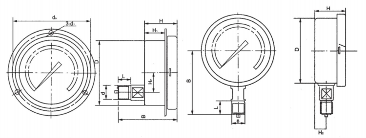 | Y-100B Y-150B | 0~0.1、0.16、0.25、0.4、0.6、 1、 1.6、 2.5、4、6、10、16、25、40、60 -0.1-0, 0.06、0.15、0.3、0.5、0.9、1.5、2.4 | 1.0 1.6 2.5 |