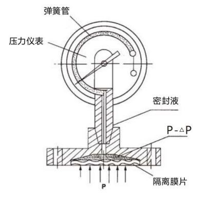 為了擴大各種通用型壓力儀表的使用范圍,能適用于測量強腐蝕、高溫、高粘度、易結晶、易凝固和有固體浮游物 介質的壓力,以及對某些測量介質不能直接進入通用型壓力儀表內和便于清洗防止沉淀物質積聚的場合的壓力檢測時, 必須采用由隔膜隔離器與通用型壓力儀表組成一個系統(tǒng)的隔膜表。