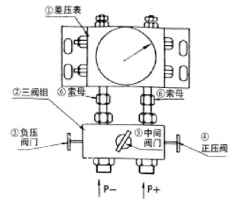 注:在裝表或卸表時,必須保證中間閥門和P +、P-兩個閥門全部開啟,以確保儀表能正常使用。