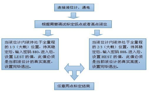 2/3 處標(biāo)定(密碼 888):使液位計(jì)處于 2/3 處左右任意高點(diǎn)標(biāo)定。